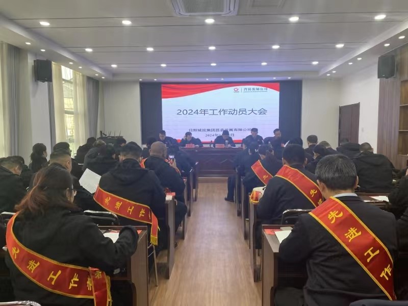 日, 日照城投集团莒县发展有限公司隆重召开2024年工作动员大会,总结2023年工作,表彰先进,部署2024年任务。会议宣读了《关于表彰2023年度先进工作者的决定》,并为受表彰的个人进行颁奖。会上,公司与各部门、子公司签订2024年度生产经营目标责任书,全员学习、抄写了《文明廉洁承诺书》。