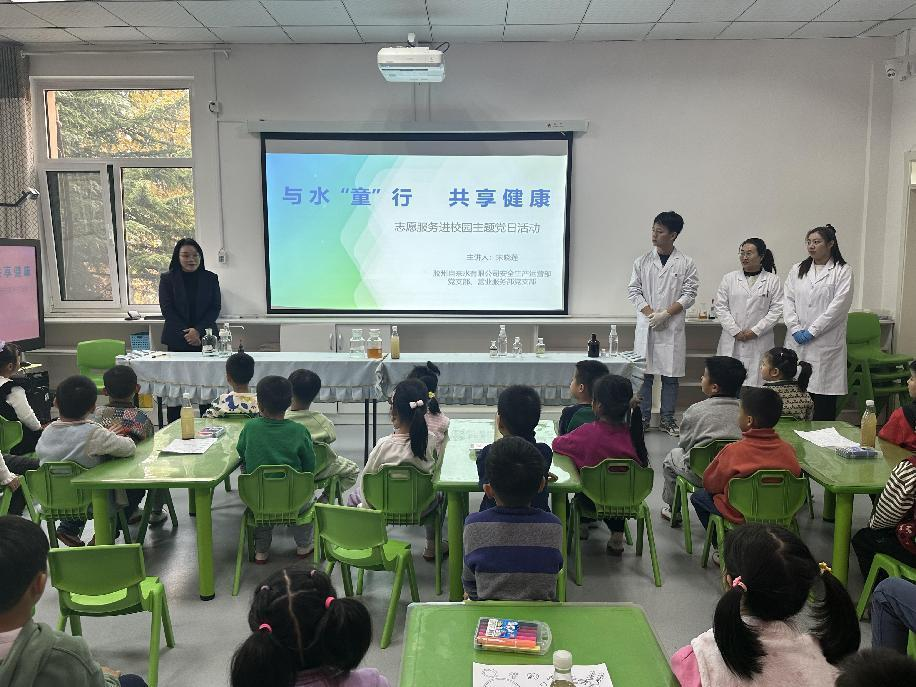 为营造全社会珍惜水资源,形成更加浓厚的节水氛围,11月22日,青岛胶州自来水有限公司组织志愿服务人员走进胶州市实验幼儿园浮翠分园,开展“与水‘童’行 共享健康”志愿服务活动,为小朋友们带来了一堂生动形象的节水课,获得了学校师生们的一致好评,校方将一面印有“情系师生 服务至上”锦旗送到志愿者手中。