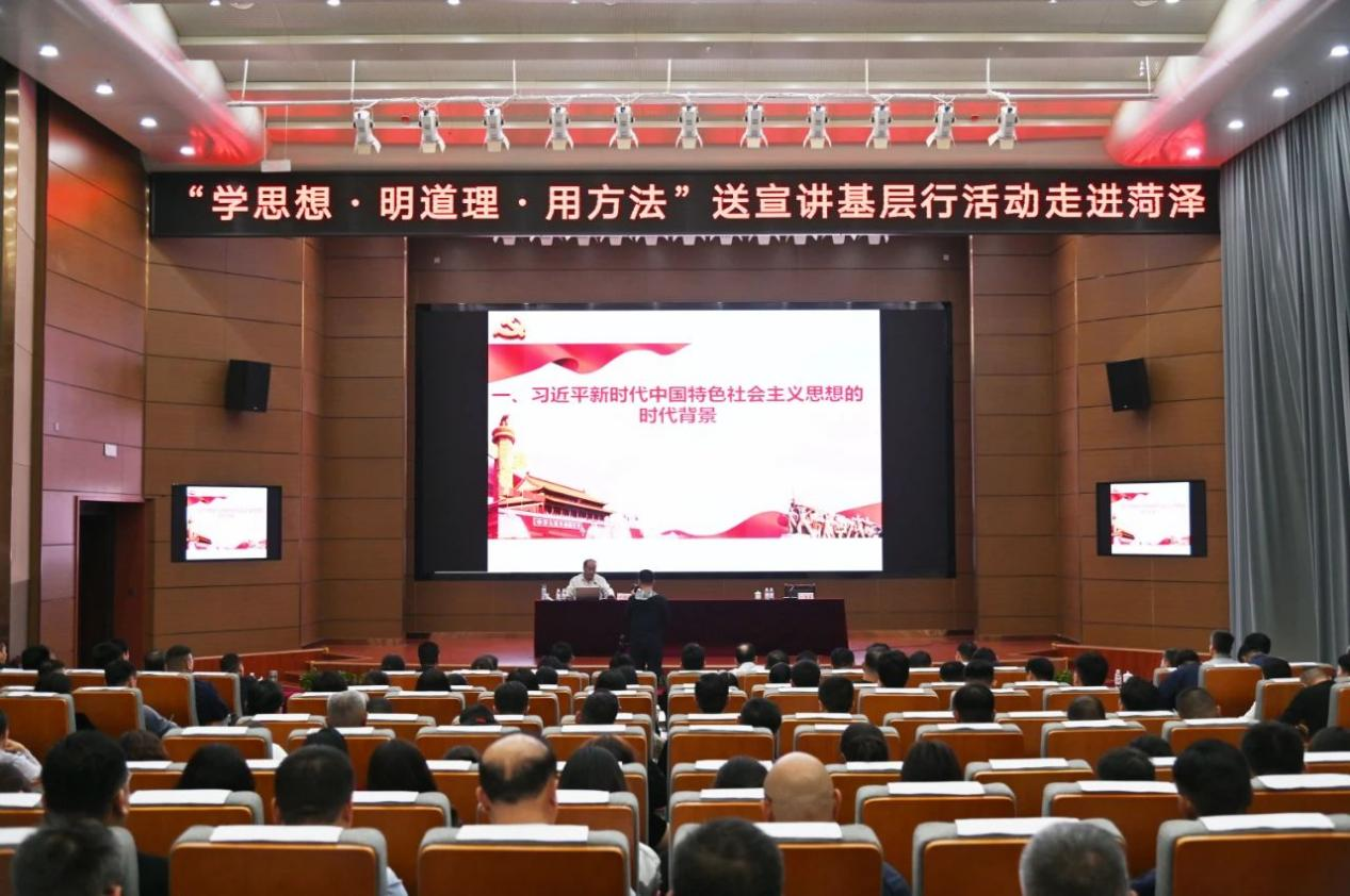 为持续推动学习宣传贯彻习近平新时代中国特色社会主义思想走深走实,10月24日,山东省“学思想·明道理·用方法”送宣讲基层行活动走进菏泽水务集团尧舜牡丹产业园。中共山东省委党校党史部教授尹传政作主题报告。菏泽市水务局、菏泽市水务集团党员干部职工共计200余人参加活动。